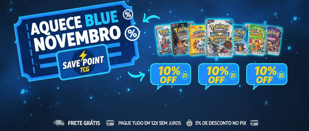 Todo grande aventureiro precisa de um lugar para guardar seus tesouros e se preparar para o próximo desafio. A Save Point TCG nasceu de uma paixão que começou na infância: a emoção de abrir um booster pack, o cheiro de uma carta nova e a adrenalina de um duelo épico.